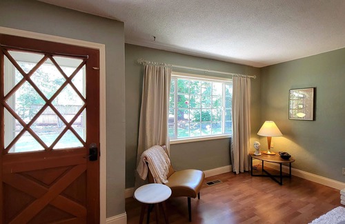 This lovely river front space has four bedrooms with Queen beds, two bathrooms and a kitchen. There is also a trundle bed for an extra guest or child. The full kitchen and laundry give you all the comforts of home while on vacation. The home is located in the breathtaking Oregon countryside surrounded by trees, mountains, wineries and water. Enjoy the views and quiet setting in this serene getaway.