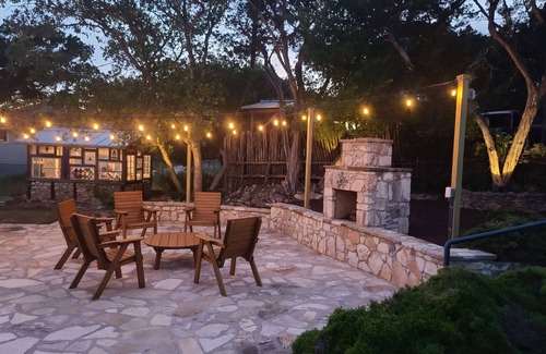 Cedar Cliff Cottage sits on a bluff above the Guadalupe river's north fork in one of the most scenic areas in Texas. This incredibly special area host some of the most popular camps and resorts in the hill country. Camp Stewart, Camp Waldemar, The Boy Scouts Camp Bear Creek and Mo Ranch are all within a few miles or less. This little cottage packs a huge punch when it comes to comfort and amenities. The cottage is clean and cozy, and the property is open and spacious, allowing your group to stretch out and find the spaces that suit them best. Whether it's a giant, private patio with a stone fireplace, a heated, covered back deck that's perched above the river valley, or multiple other options for relaxing, there is a place for every mood and personality type. As our personal guest, you will have access to hidden river treasures seldom seen by and not accessible to the public. Beautiful river features like a picture-perfect waterfall and crystal-clear plunge pool with cascading spring water constantly rushing over it are waiting for you to explore and enjoy. When first entering the property, you will find yourself immediately thrown into the hill country lifestyle with a huge stone patio, loaded with custom seating and tables, and a picture-perfect outdoor stone fireplace that is just waiting to be lit up at night. Here you will find an excellent place to spend the evening and night gathering together and watching the stars above, all while sitting under the dreamy party lights. This is also the location of the BBQ smoker pit that is sure to be pumping out the incredible smell of burgers and steaks during your stay. Upon entry you will find a cute kitchen equipped with all types of cooking appliances, including an oven/stove top, microwave, pancake griddle, blender, crockpot and just about everything else one may need to cook their favorite meals. The living room is a wall of windows and has plenty of seating for everyone. The 65 inch 4K TV is perfect for family movie night after spending the day in the sun. The built in window seat is a great place for sleeping small children with blankets and pillows provided. Here you will also find a sleeper sofa, perfect for fitting a couple of more guest into the cottage for efficient vacation living. Just off of the living room is a large, covered deck with more seating and tables. The deck is an excellent place to hang out under cover, eat, and take in the incredible eyepopping, panoramic views of the mile long bluff just across the north fork valley. For the cooler nights, you can crank up the commercial electric heaters with the push of a button. At night you can turn on the party lights, kick back and enjoy the cool summer breezes that blow through the valley and ridge tops of the Guadalupe's north fork. If you are lucky enough to have a clear, moonless night during your stay, you will see stars like you never have before. At night you can even hear the calming sounds of the waterfalls just upriver, echoing off of the limestone cliffs. Each bedroom has brand new beds packed full of fresh blankets and pillows to give you the coziest sleeping arrangements possible. The cottage sits high above the river, allowing for panoramic views, but also quick access to the water just down a fun little path through the trees, or a second path that takes you directly to the river's plunge pool and waterfalls. Two kayaks are available for our guest use, however, you will need two people to carry each one down to the water and then back to the house each day. Ever snorkeled fresh water? This is a place you can do it because 90% of the time, the water is virtually as clear as a swimming pool. This clarity also gives moms peace of mind knowing they can see the little ones at all times. No deep dark water here to worry about moms. This home is perfect for smaller groups, consisting of no more than 4 adults, or 4 adults and the accompanying children all totaling no more than 6 persons. We provide blow up mattresses to put the kiddos on if you need every bed for the adults. This property does sit on a bluff and small children must be watched at all times as well as young adults properly supervised. (This home is in a small neighborhood that has full time residents so strict noise rules are in place and louder groups will not be able to stay here. We do expect all guest to move conversations and gatherings into the house at 9 pm on weekdays and 11pm on Fridays and Saturdays.)