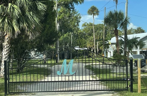 Right on the Suwannee river, private canal, 2 miles from the Gulf of Mexico. Perfect Sunrise view. Privacy in gated area on your own island. Plenty of room to park. Only 23 houses on the river and this one has the best views and has a private inlet for parking your boat.