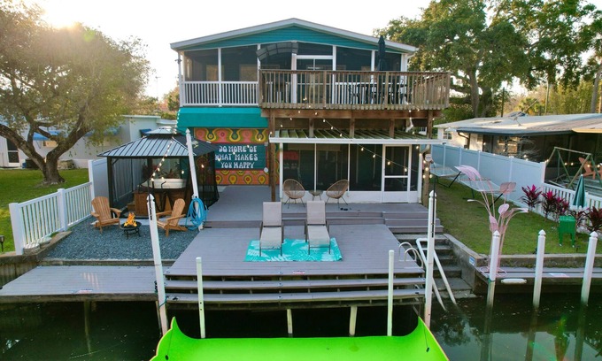 River home with huge arcade, hot tub kayaks, mini golf and floating pad, 80in TV is located in Weeki Wachee Gardens. River home with huge arcade, hot tub kayaks, mini golf and floating pad, 80in TV provides accommodation, featuring TV, Guest Services, Barbecue/Outdoor Cooking, among other amenities. This House features TV, Guest Services, Barbecue/Outdoor Cooking, to make your stay a comfortable one.
