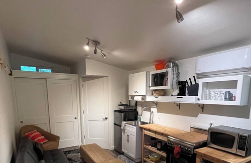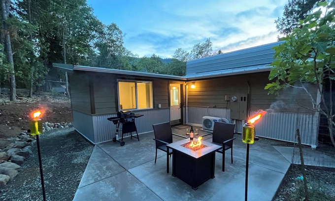We are happy to assist you in your efforts to explore the property with the use of our kayaks, and ziplines across the river(both directions). We are neighbors to the Applegate golf course and only 10 minutes from downtown Grants Pass this provide a key access point to the Applegate Valley (wineries, hiking trails, Hellgate Jet boat excursions etc.). Located 40 minutes from Jacksonville, 1 hour from Ashland, 2 hours from Brookings, OR (coast access), 1.25 hours to the OR Caves, 1.75 hours to Crater Lake National Park we are in a strategic yet quiet location for exploring Southern Oregon. This one bedroom home has its own entrance/driveway and designated parking. Uniquely situated minutes from town yet in a quiet private setting one experiences nature at its finest with a private outdoor shower. A tiny house feel with all the amenities of home will leave you well rested in our quiet location. The home is a 5-7 minute walk downhill, including stairs, to our own secluded private beach oasis. There are no neighbors in the area or on the river in this section. Our private beach is equipped with a deck, gazebo, patio tables/chairs, propane heaters, fire pit, BBQ. Prior arrangements with owner must be made for use of zipline (Ziplines have max weight capacity of 200lbs/ rider). Zipline across the river both directions professionally installed. Fly fishing only, we do not allow spinning rods, lures, or bait on our property.
