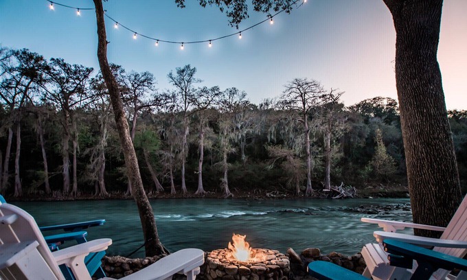 A 500 foot crushed granite trail leads down to a private secluded entrance into the Guadalupe river bank. Overlooking the peaceful river rapids is a relaxing sitting area w/ Polywood Adirondack chairs & a propane fire pit. More steps lead down to the river rapids which are about 1-2 foot deep. Perfect for sitting in & relaxing. Tie your tube up to a boulder & relax.