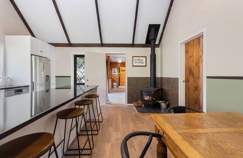 The main house here at River Lookout Lodge is complemented by a self-contained cottage, which retains much of its architectural heritage with pops of the same modern styling of the house. A cosy lounge, fully equipped kitchen, bedroom, and full bathroom offer everything a couple or teenage family member would need for a private space to call their own.