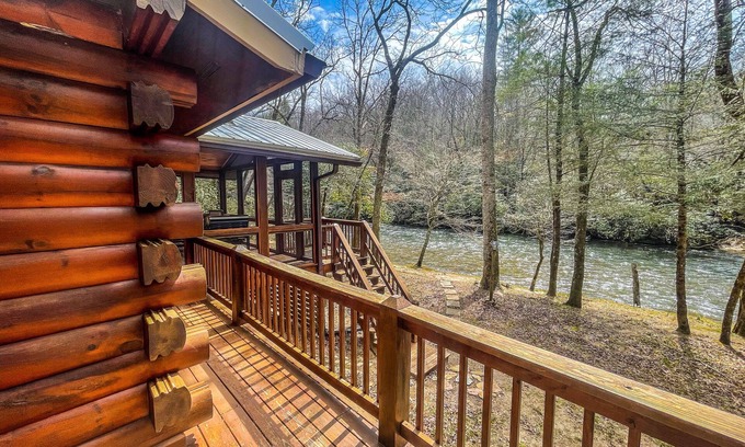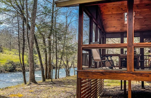If you are looking for a serene and relaxing getaway look no further. Imagine waking up in the giant master suite with the sliding door open listening to the rolling water of the Toccoa River. The river runs only 20 feet from the lodge so there is a constant sound of running water; what a wonderful sound. The back porch is screened in so no need to worry about bugs. If you are a fly fisherman, just grab your gear and walk directly into the running water; no need to drive anywhere. The lodge sleeps 6 so there is plenty of room for friends and family. Come make long lasting memories at the River Run Lodge.