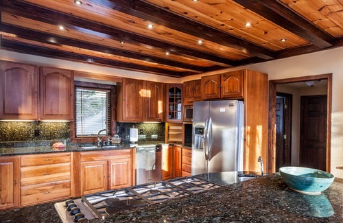 From the moment you enter the front door, this home will beckon you to relax and enjoy. The warmth of ceiling to floor wood and huge windows for viewing the river from every room will take your breath away! The attention to detail that has been given to this home makes it a special water front retreat for any occasion. The open floor plan is perfect for entertaining. The great room boasts a river rock, wood burning fireplace, 50" Flat Screen TV and access to a large covered porch overlooking the river. The well appointed kitchen with five burner gas stove and all stainless steel appliances provide everything needed to prepare some delicious meals while still enjoying your company.