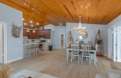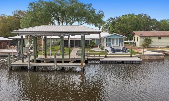 Welcome to River's Edge Retreat! This 3 bedroom, 3 bath PLUS bungalow with living, bar and half bath and outdoor shower is the perfect place to vacation while in Florida's Nature Coast! Located on Little Piney Bay, the only natural canal in Homosassa, this home is the place to bring your family, friends and your boats! Large dock with room for two boats. Larger docking area can accommodate up to a 40' boat and the floating dock can accommodate up to a 25' boat. The dock is a fishermen's dream with rod holders, fish cleaning station, lots of hoses for rinsing and shore power available. There is a large yard for the kids to play with a swing and 4 Adirondack chairs on the large dock for relaxing by the water and 4 Adirondack chairs by the wood burning firepit. A newly added "boathouse" rounds out the this backyard dream! The boathouse has club chairs, a smart tv, bar area, half bath and outdoor shower! There are two kayaks with vests and whistles to enjoy on your stay. When you aren't outside enjoying the view, the inside of the home offers just as many comforts. The primary and guest bedroom have en-suite bathrooms. The primary bedroom has a king size bed, two night stands and dresser. The connecting bathroom has a dual sink vanity and shower with LED rain showerhead. The second suite has a king size bed and twin bunk beds and two night stands. The bathroom is a tub/shower combo. Both bedrooms have luggage racks to make your stay more comfortable. There is a small bunk room with a triple bunk bed. there is a full bathroom in the front of the home for guests to use. There is a laundry room with stackable washer and dryer. Starter laundry supplies are included. The dining room table seats 6 with three additional seats at the kitchen island. There is also a coffee bar with Keurig coffee maker. Starter supplies of coffee, creamer and sugar are there so you can relax right away! We also have games for the whole family! The kitchen is open to the rest of the house. The kitchen is stocked and ready for some entertaining! There is a blender, toaster, griddle and airfryer! The appliances are new. The stove is electric smooth surface and the microwave has convection. We have supplied ceramic as well as plastic dishes and drinkware. In the kitchen you will find a portable Sonos speaker. The family room may be one of our favorite places to spend time. The large sectional sofa is just the place to relax and reminisce on your day! The large ottoman is great for resting your feet, or you can tuck it against the couch and have a large area for chilling and watching movies. The 75" smart tv with Govee lighting is perfect for movie nights. The lighting will match the lighting on the tv, creating an awesome movie watching experience. The outside patio has a sectional sofa with propane fire pit. There is also a 6 person outdoor dining set. Spend time with friends and family while also admiring the view! The view is the BEST part of this home. The home sits on a large "canal". We are just one home away from Homosassa River, making it easy access to the Gulf of Mexico or Homosassa Springs. We are close to the end of the no wake zone, making the Gulf access much quicker. Whether you want a weekend alone, some family time or get away with your friends...Old Homosassa is the place to be! We are here to make sure you have a wonderful time while enjoying our little piece of paradise! Come stay