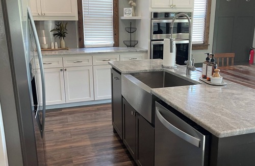 KITCHEN: Fully equipped with cooking basics and spices, 2 ovens, 2 microwaves, Keurig coffee maker for pods or carafe, island, griddle, crockpot, blender, and mixer.