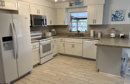 If you are bringing a boat or choose to rent one nearby, there is a 12x10 dock/with ladder for your boat behind home. Boat ramp is just 70 ft away. There are many islands in the Gulf to explore and great fishing. Clean your catch of the day and grill it on propane grill! Whatever adventures you choose you will return home to your lovely, clean mermaid themed home where you may observe jumping mullet, sea otters, frolicking manatees, barracudas, Redfish, ladyfish, sting rays, sheepshead, mangrove snapper, alligators, ibis, great blue heron, night heron, pelicans and more from the dock and large deck.