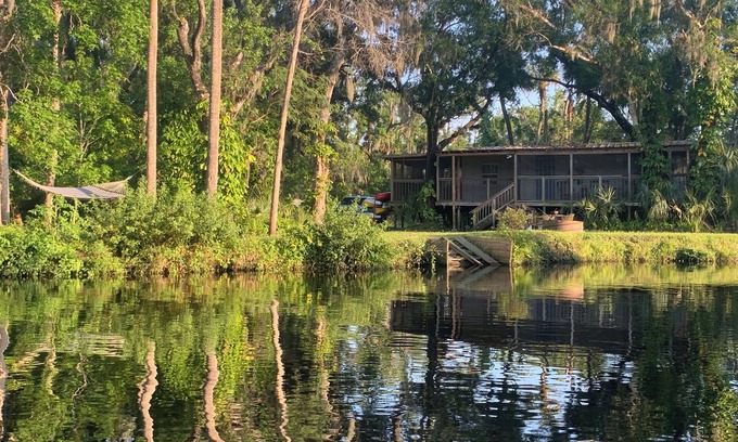 Experience the magic of "Old Florida" at this unique hidden gem on the wild Little Manatee River. The other side of the river is the state park, and wildlife abounds: alligators, manatees, turtles, deer, hogs, hawks and pileated woodpeckers are common sights. Kayaking right from the house is super easy and beautiful. The house itself is very comfortable with two queen bedrooms and a pull-out sofa with a memory foam mattress. The kitchen is fully equipped for cooking. The big screened porch is the best space to hang out. Outside there's a fire pit, hammock and swing. You feel far from everything, but it's only a ten minute drive to the commercial strip and the highway. This is a fantastic place for a romantic getaway or a fun family get-together. It's a natural wonder!