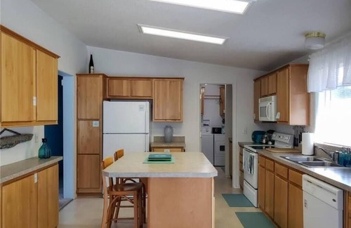 Your getaway home is equipped with Wi-Fi, AC and Smart TV. The spacious dining room table seats 6 opening into the kitchen with an island and plenty of countertop space. You will find the kitchen is equipped with 2 refrigerator/freezers (1 located in laundry room) a dishwasher, range, microwave, Keurig coffeemaker, K-Cups, toaster and blender. The laundry room is equipped with a full size washer and dryer along with the necessary supplies for your stay.