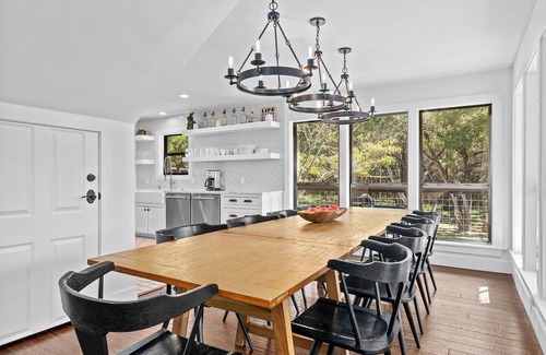 Riverfront | 5 Acres | 2 Hot Tubs | Sleeps 17 is located in Wimberley. Riverfront | 5 Acres | 2 Hot Tubs | Sleeps 17 provides accommodation, featuring TV, Fireplace/Heating, Kitchen, among other amenities. This House features TV, Fireplace/Heating, Kitchen, to make your stay a comfortable one.