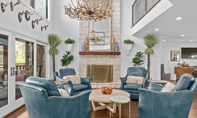 WONDERLODGE proudly presents Luna Rio, a tranquil riverside retreat nestled on a stunning 5-acre estate. Surrounded by rolling hills and sweeping views of the Wimberley Valley, this property is adorned with fields of wild grasses and vibrant flowers, offering an idyllic escape for families or groups seeking serenity and natural beauty. Comprising three separate units on a 5 acre property, it offers both space and intimacy for unforgettable moments together. Just steps from the peaceful Blanco River, you can soak in the starry sky from the hot tub, cozy up by the firepit roasting marshmallows, or simply relax to the soothing sounds of the river. Luna Rio combines outdoor magic with luxurious comfort, creating the ideal setting for relaxation and connection.
