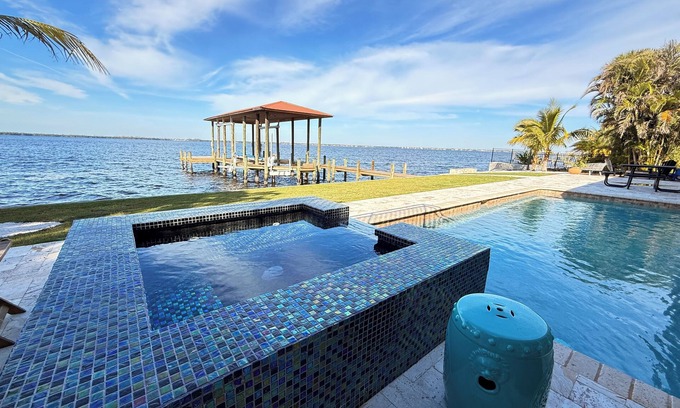 Riverfront 5 bedrooms, 5 baths , pool , spa , beach , dock and stunning views ! | Villa in Fort Myers