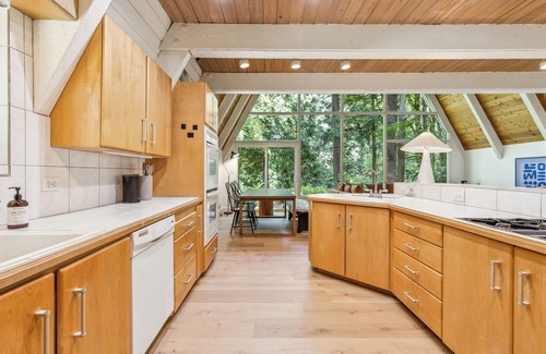 The downstairs has a king master suite as well as a family suite tucked in back with a bunk bed in one room connected to a queen bed in another perfect for families. The second floor has a queen bedroom as well as an open loft with a queen bed overlooking epic views of the river below. The third floor has two twin beds for additional guests. While this is a fun space for children, we don't recommend children under 14 be unsupervised due to the precarious nature of the ladder up to this top floor. The perfect space for a summer retreat, family ski trip, romantic getaway or an adventure in the mountains. The house is spacious and welcoming for groups of up to 12 people while offering plenty of additional spaces to branch off for solitude.
