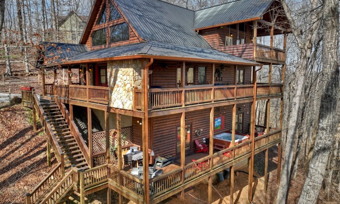 Riverfront, Amazing Views, Sleeps 10, Pool/Ping Pong Table, Putting Green, Dock | Cabin in Blue Ridge