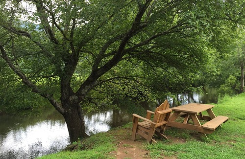 Riverfront cabin located on 2000’ of the beautiful Hiawassee River... Relax on the covered porch