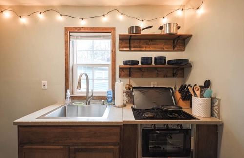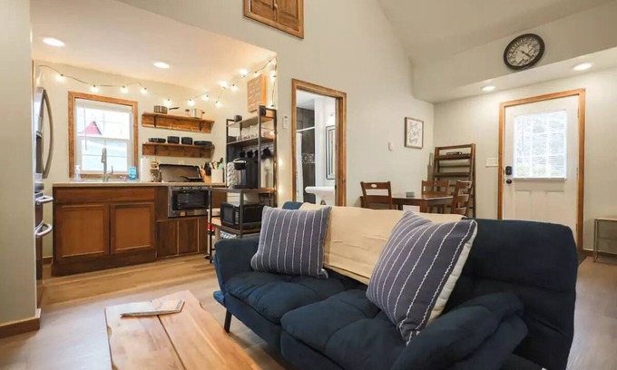 These cozy cabins sit on 10+ acres of stunning forest to hike, along with a beautiful river/pond to fish in, only foot-steps from your front door.