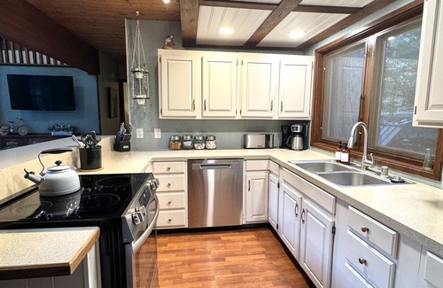 There is ample parking in front of the cabin, with a gently steep but short driveway to access it. We do recommend 4 wheel drive cars to get up the short driveway, or you may need to park on the neighborhood street. The driveway is not appropriate for commercial sized vehicles or RVs.
