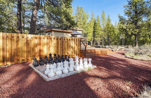 The outdoor area features a fenced side yard, paved driveway with a basketball hoop, fire pit, riverfront deck, hot tub, and a large chess set with amazing river views! The large driveway has ample space for your boat, RV, Snowmobiles, ATV’s, etc., making this cabin a great base camp for all your Central Oregon Adventures. Just a few minutes away is glacier-fed Fall River, which is world renowned for its stellar fly fishing and beautiful Falls that are a short 1/2 mile hike from the parking lot. Golf, shop, swim, dine and play in Sunriver 10 minutes from your front door step. Less than an hour’s drive gets you to all of the popular lakes in the Cascade range (Crescent, Cultus, Odell, Crane Prairie, Twin Lakes, Elk, Waldo, Lava, Wickiup to name a few). Mt. Bachelor is an easy 25 minute drive for some of the best skiing in the Pacific Northwest. This home is ideally located to take advantage of all that Central Oregon has to offer!