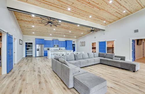 INDOOR LIVING: Smart TVs w/ cable, electric fireplace, dining table, breakfast bar, 4 shower/tub combos, ceiling fans, board games, books