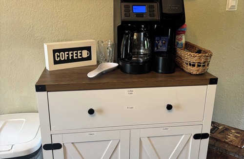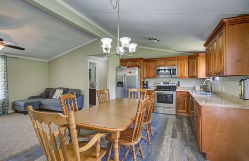 Full kitchen with refrigerator, stove, oven, microwave, dishwasher, coffee maker, dishware and cooking utensils. Kitchen table seats 6- 8. Patio table on the porch with 4 chairs and grill.