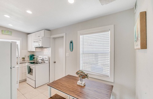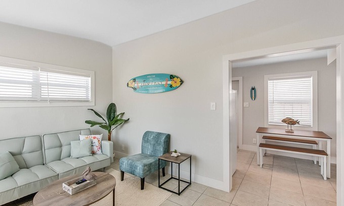 Perfect place to vacation!! This 2 bed 1 bath is completely updated with with all new furniture. Coastal decor throughout makes this the perfect place to call home while you’re on vacation. This condo has all NEW: windows, metal-roof, 6-inch baseboard, trim, blinds, fans, light fixtures, light switches, outlets, electric-panel, fresh interior paint, textured walls and ceiling. Kitchen has NEW white shaker style wood cabinets, lovely grey granite counter-tops, white subway tile backslash, and all new appliances. All three beds have memory foam mattresses. There’s an air mattress. Three brand new flat screen smart TV's. All cook wear, dishes, cups, tuber-wear, utensils are brand new. New Keurig, Ninja blender, also beach essentials, bbq grill and so much more. Come and watch the dolphins play from the large community dock. Walk to the beach and Taco city for lunch! 2.5 miles from downtown Cocoa Beach. 5 mins from Pineda Causeway. Coin washer and dryer are located and premises.