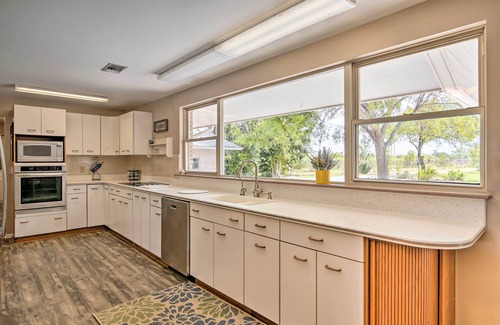 Take the family on a one-of-a-kind getaway at this 3-bedroom, 3-bathroom Los Fresnos home situated on 1.5 acres. Featuring the Resaca de los Cuates in the backyard and a citrus orchard in the front yard, this vacation rental makes every day a special treat. View incredible sunrises and sunsets, go fishing or birdwatching right on the property, and enjoy numerous amenities like the full kitchen, Smart TV, sunroom, and more. Don’t forget to hit the beach and explore South Padre Island close by!