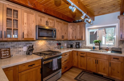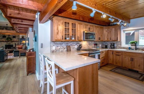 Located in a quiet residential neighborhood, enjoy the peace and tranquility of the outdoors while being close to the shopping outlets, restaurant and year-round activities of downtown North Conway and the Mount Washington Valley. Pets negotiable, inquire with the owner. With 120' of private river frontage on the banks of the Saco River, this waterfront house features an open concept with 4 bedrooms, 3.5 baths and can sleep 8. Features one of best deep water swimming holes on the Saco right in our backyard! Enjoy the tranquility of the outdoors while being close to the shopping outlets, restaurants and year-round activities of downtown North Conway and the Mount Washington Valley. Conveniently located just minutes from the renowned Fryeburg Fair! Private water access from the backyard and views of the river from most every room. The beauty of the river extends through all four seasons and is fun for the whole family. From fishing, swimming and paddling in the summer, beautiful foliage in the fall, skiing and boarding in the winter and spring, this home has it all. High cathedral ceilings and an open main level make for a wonderful chance to spend time family and friends. This house also features a fireplace, Roku, wi-fi, gas grill and fully renovated kitchen (spring '23) equipped with a gas stove, coffee maker and dishwasher. Large, wrap-around deck with hot tub and screened-in porch promotes peaceful outdoor enjoyment for all ages. Also featuring a lower level with a bonus sleeping room, tv and pool table. Walk-out to the backyard and stairs to the water (during warm summer months - install and removal date is always TBD pending weather and river levels). Spend your next vacation on the Saco River! This home is a not a party house and there is a zero tolerance policy for failing to adhere to the house rules. We are in a quiet residential neighborhood and our neighbors are important to us. To ensure a peaceful stay for all, the home features NoiseAware monitors as well as a video camera in the backyard.