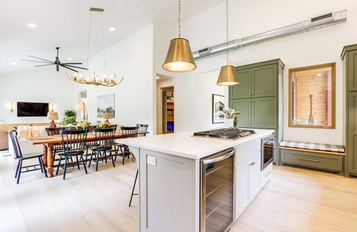 Nestled in Huntsville, AR, where outdoor adventure and historic streets lined with shops and eateries await you, this secluded 2-bed, 2-bath vacation rental provides a modern retreat with on-site access to the Kings River. After a day of kayaking or zip-lining, gather for a barbecue on the patio or relax in the yard while the kids tell stories by the fire pit. Don’t wait — book this cabin now!