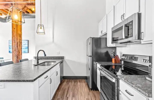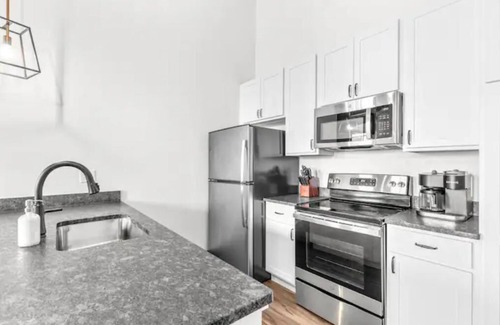 Enjoy a short walk to Busch Stadium for Cardinals games, take in the sweeping views of the iconic Gateway Arch, or attend major events at the convention center just two blocks away. After a day of exploring, relax in your private retreat featuring high ceilings, modern furnishings, and all the comforts of home — including a fully equipped kitchen, fast Wi-Fi, and remote self check-in.