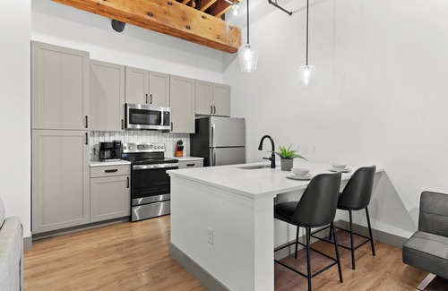 Enjoy a short walk to Busch Stadium for Cardinals games, take in the sweeping views of the iconic Gateway Arch, or attend major events at the convention center just two blocks away. After a day of exploring, relax in your private retreat featuring high ceilings, modern furnishings, and all the comforts of home — including a fully equipped kitchen, fast Wi-Fi, and remote self check-in.