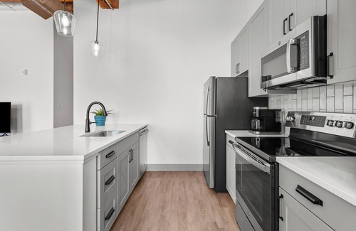 Enjoy a short walk to Busch Stadium for Cardinals games, take in the sweeping views of the iconic Gateway Arch, or attend major events at the convention center just two blocks away. After a day of exploring, relax in your private retreat featuring high ceilings, modern furnishings, and all the comforts of home — including a fully equipped kitchen, fast Wi-Fi, and remote self check-in.
