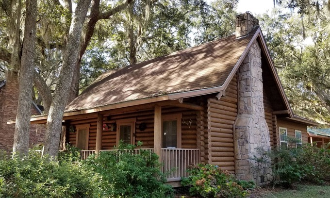 RIVERFRONT Log Cabin in South GEORGIA Woods near St. Simons, JAX Airport | Cabin in Nahunta