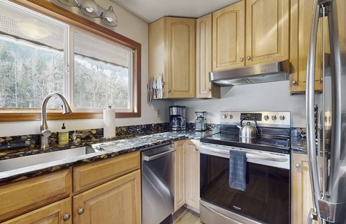 Enter the home and travel through the lower level to reach the great room with high ceilings and a breathtaking riverfront vista. Prepare meals in the updated kitchen with gleaming counters and a river view. Enjoy a warm mug of coffee as you chat about the exciting day to come, or sip wine in front of the TV while you take in a movie and relive the mountain fun of the day that has just passed. Then slip into the large, brand new riverfront hot tub and turn on the jets to relax you and soothe muscles tired from skiing, snowboarding, hiking, or a thrilling day of river rafting. Then sink into one of the comfortable beds, either in the downstairs bedrooms, upstairs bedroom, or loft with two log beds and river views, and recharge for another adventure-filled day. All in all, this home has the luxury, comfort, and prime location you are looking for in your next mountain vacation.