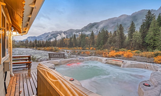 Riverfront Mountain Home w/Private Hot Tub, Upgraded Kitchen, and Large Deck is located in Gold Bar. Riverfront Mountain Home w/Private Hot Tub, Upgraded Kitchen, and Large Deck provides accommodation, featuring Laundry, Sports/Activities, Entertainment, among other amenities. This Cabin features Laundry, Sports/Activities, Entertainment, to make your stay a comfortable one.
