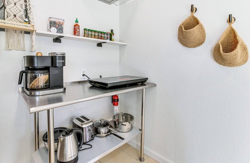 - Drip/Keurig coffee maker (starter coffee provided), toaster