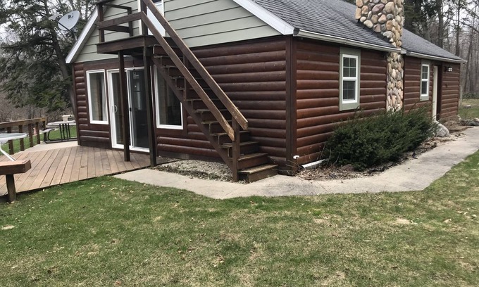 Secluded 3 bedroom cabin sleeps 10 comfortably, located on the White River near Hesperia, Oceana county Mi.. Cabin is a non smoking cabin