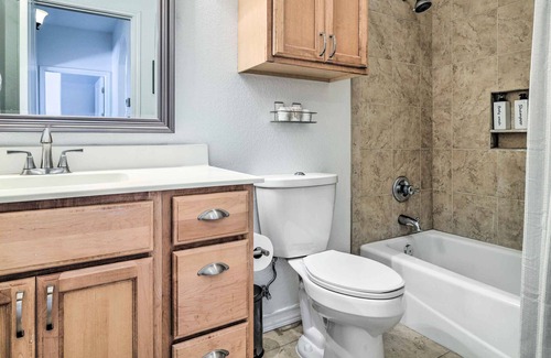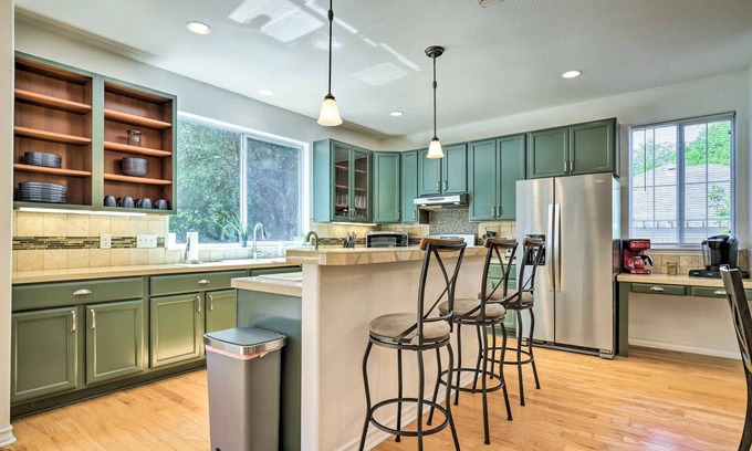 Come tube, kayak, swim, and float from the yard of this darling 3-bedroom, 2-bathroom vacation rental in Martindale. Let yourself be mesmerized by the emerald hues of the San Marcos River or enjoy the patio and 3 Smart TVs when you’re not exploring. Enjoy world-famous BBQ, live music at places like historic Gruene Hall, a riveting view at Wimberley Zipline Adventures, or snag a deal at the San Marcos Premium Outlets. There’s plenty to cherish at this charming abode.