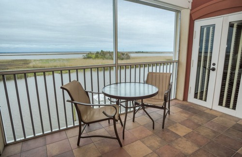 Perfect Riverfront location! Fish In/ Fish Out- have your guide pick you up at your front door for an adventure in the River, Bay or Gulf! Fishing not your interest? Then walk to the finest restaurants, great shopping and museums in Historic Apalachicola. This privately owned unit in the premier waterfront development of Water Street Hotel offers a 3rd Floor View of Sunrise and Wildlife. This condo has a King Bed Master suite and the 2nd bedroom has BUNK BEDS with a private full bath. There is also a convertible sofa in the living area, a Screened Porch, Fully Appointed Kitchen. Week long and month long stays are available. 10% Tax and Cleaning Fee paid by guest.