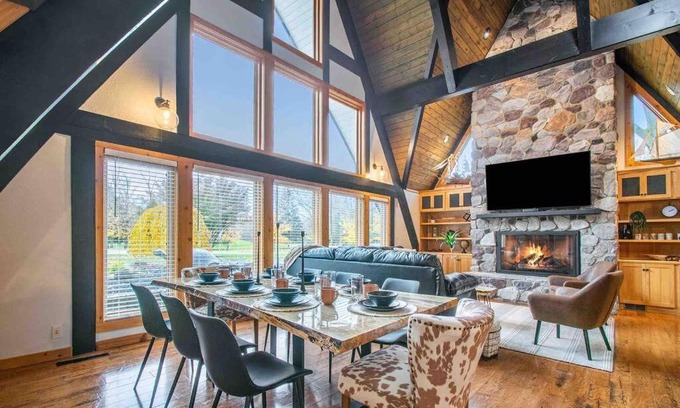 Offering a garden, Riverhaven Glamorous A-Frame On St Joe River! provides accommodations in Bristol. This property offers access to a balcony and free private parking. The villa also offers facilities for disabled guests. With free Wifi, this 4-bedroom villa offers a cable flat-screen TV, a washing machine, and a fully equipped kitchen with a dishwasher and oven. Towels and bed linen are offered in the villa. For added privacy, the accommodation has a private entrance and is protected by full-day security. For guests with children, the villa features an indoor play area and a children's playground. Guests at Riverhaven Glamorous A-Frame On St Joe River! can enjoy cycling and fishing nearby, or make the most of the sun terrace. Notre Dame Stadium is 27 miles from the accommodation, while Midwest Museum of American Art is 9.1 miles from the property. South Bend Regional Airport is 32 miles away.