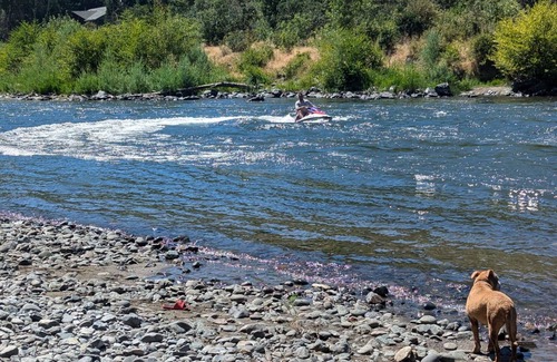 RIVERLIFE is waiting for you at this phenomenal private beach oasis. Watch our Osprey, “walley”, catch trout and steelhead right in in front of you daily while soaking in our hot tub. This homes backyard is your OWN PRIVATE SPOT to enjoy the beautiful views of the Rogue River. Walking distances from AMAZING Sushi, Mexican food, and the beautiful town of Rogue River. We also provide 5 bikes for your family, so you can enjoy the bike trail along the river that is over 40 miles long. With an AC unit to keep you cool, this cool, private beach oasis also offers a park like backyard in the shade, that overlooks the river, and one of the BEST FISHING holes in the entire river. Steelhead, trout, and salmon are right at your fingertips, not to mention amazing family friendly rafting right to your private beach. Come sit back and enjoy your family memories at RIVERLIFE.