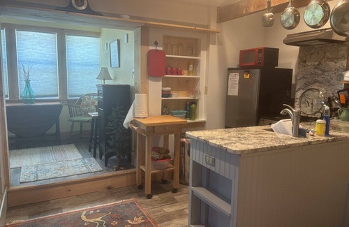 Stay comfortably in Historic South Sutton at this studio style cottage. The features a cozy queen bed with a river front view, perfect for a good night's sleep. Full kitchen, modern bath, dining and sitting area. Our home was built in 1799 on one of the original area roads, now a side road off route 114. The property boasts mature plantings, flowers and fruit trees. Close to the village square containing our Meeting Hall, old Schoolhouse, Historic Society Museum and more. It's a 6 mile drive to Route 89 with gas and grocery store in Warner, the south exit. Route 114 North, takes you to New London, NH. A lovely historic village with shops, restaurants, playhouse and Colby Sawyer College.