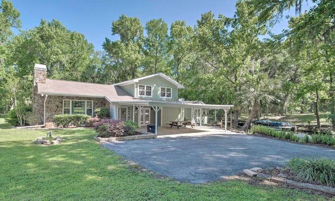 Explore the beauty of Florida’s Nature Coast from this charming vacation rental on the Withlacoochee River. Featuring 4 bedrooms, 2 bathrooms, and ample entertainment for the whole family inside and outside, this Dunnellon home is the perfect getaway. Soak up the sunshine from the lounge chairs in the backyard, take the provided kayaks out on the water, or enjoy a boat tour at nearby Captain Bob’s. Come dinnertime, cook a meal in the culinary kitchen or head to Swampy’s for some local grub!