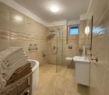 Offering a garden, Riverside Krásna features accommodations in Košice. This property offers access to a balcony, darts, free private parking, and free Wifi. Cathedral of St. Elizabeth is 6 miles from the apartment and Spolocensky Pavilon is 5.8 miles away. Featuring a terrace and garden views, the spacious apartment includes 2 bedrooms, a living room, satellite flat-screen TV, an equipped kitchen, and 1 bathroom with a walk-in shower and a bath. Towels and bed linen are available in the apartment. For added privacy, the accommodation features a private entrance. Kosice Train Station is 5.9 miles from the apartment, while Steel Arena is 6 miles from the property. Kosice International Airport is 5 miles away.