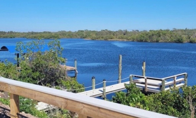 This beautiful, renovated home includes amenities such as: indoor and outdoor seating with water views, Smart TV, High-Speed Internet and nearby boat launch. Your host has paid attention to every detail of this home to create a great guest experience. Your group will find ample space for dining, with a dining table with seating for all guests. The cozy space features three bedrooms and two bathrooms and smart TV with your favorite streaming services available. The relaxing yard area creates a Zen mood with its beautiful nature environment and water scenery. Your group can relax outside, cook dinner and then dine with a tropical view in the privacy of your own home.