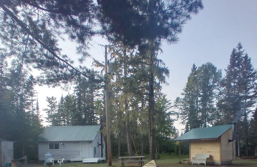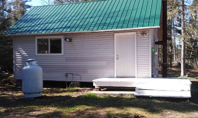 If privacy and seclusion are on your list, then Riverside Lodge, located in the heart of the beautiful Keweenaw Peninsula, may be your perfect retreat. This cozy cabin sleeps four with ease, with a king size bed and two twin beds (bunks), couch, small kitchen with cold running water, silverware and cookware, four burner stove( no oven ) and refrigerator, , and wood stove for warmth. There's no indoor restroom, but adjacent to the cabin you'll find a neat and clean privy + well-maintained Pro A! potty, and a wood fired Sauna with hot showers. The beautiful Traverse River is literally just steps away for fishing or taking a dip. and an ATV Trail is just across road. Mount Bohemia is a short drive away as well! Plenty of room for snowmobile/atv trailers