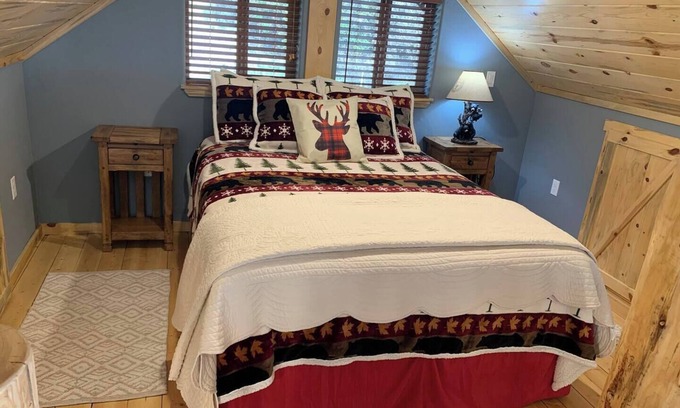 Queen bed in loft, hide-a-bed sofa on main floor.