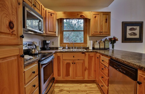 Enjoy beautiful views and sounds of the Coosawattee River from the spacious covered porch and decks of Riverview Hideaway. Tucked away on a hilltop looking down on the river and surrounded by woods, this cabin provides plenty of privacy. Enjoy frequent visits from the many Whitetail deer that call this area home. Relax and enjoy the firepit located right on the deck under a clear sky and starlit night.