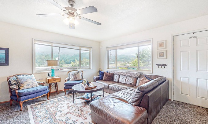 Located in the heart of the Oregon Dunes National Recreation Area, a choice coastal retreat awaits at this 3BR/2BA getaway. Delight in views of Scholfield Creek from your deck. Other highlights include a game room, well-appointed living area, and dune buggy parking in the garage.