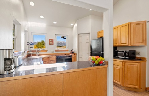A spacious, fully stocked kitchen will allow your group the ability to create meals at home during your stay. The kitchen is equipped with everything one will need to create the perfect meal after a long's day adventure. The open floor plan also allows for the chef to engage in conversation with those in the living room or at the dining table.